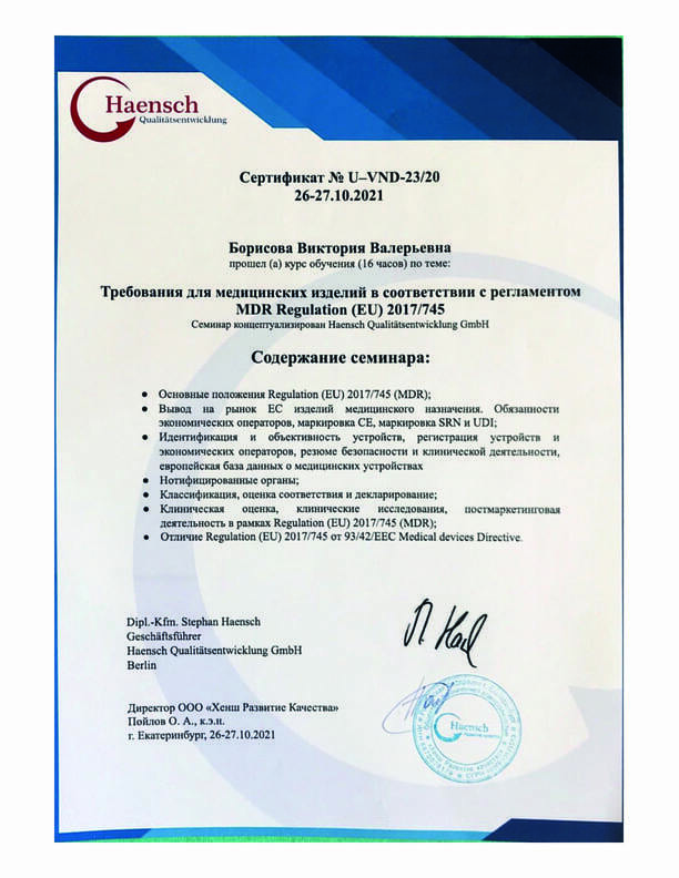 Мы — эксперты по регистрации медицинских изделий в России Мы предоставляем полный спектр услуг: от подготовки регистрационного досье до взаимодействия с Росздравнадзором. Наш опыт позволяет оценить продукцию любой сложности, и мы эффективно сопровождаем процесс, минимизируя риски и в кратчайшие сроки. Наши клиенты — российские и зарубежные производители, уполномоченные представители. Мы также консультируемся по вопросам внедрения СМК ISO 13485. Мы используем автоматизацию и инновации, чтобы регистрация процессов была доступной и прозрачной, доводя каждый проект до успеха. Если вам нужен надежный партнер для регистрации, мы готовы взять на себя все заботы.