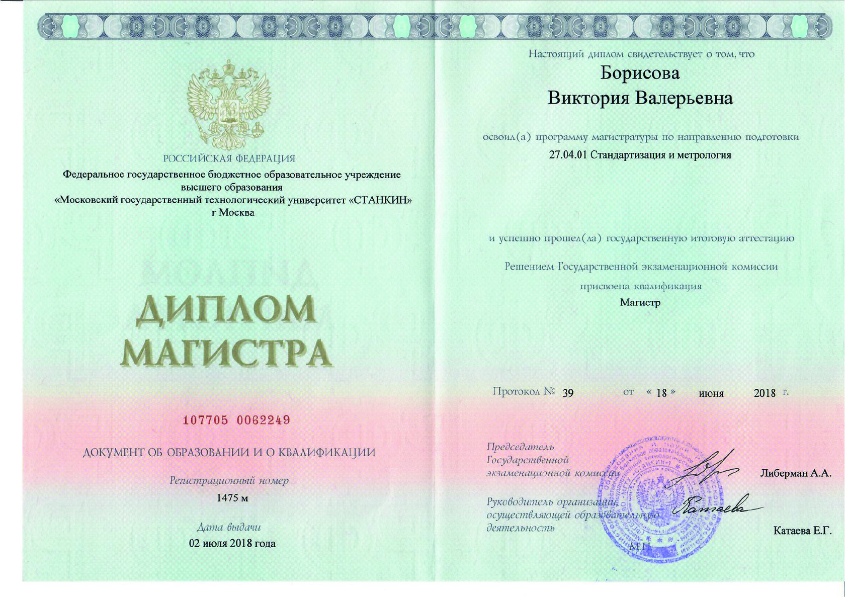 Стаж работы в регистрации: 8 лет Работала в крупных компаниях: ООО КОНМЕТ, ООО Уайт Инновейшн (входит в группу компаний ООО Уайт Продакт) Образование: - 2012 – 2016 гг: Федеральное государственное бюджетное образовательное учреждение высшего образования «Московский государственный технологический университет "Станкин", г. Москва Кафедра: Метрология, стандартизация и сертификация. Степень: Бакалавр (очная форма) - 2016 – 2018 гг: Федеральное государственное бюджетное образовательное учреждение высшего образования «Московский государственный технологический университет "Станкин", г. Москва Кафедра: Метрология, стандартизация и сертификация. Степень: Магистр (очная форма)